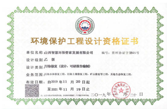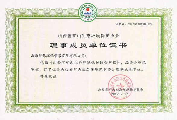 山西省礦山生態(tài)環(huán)境保護協(xié)會理事成員單位證書